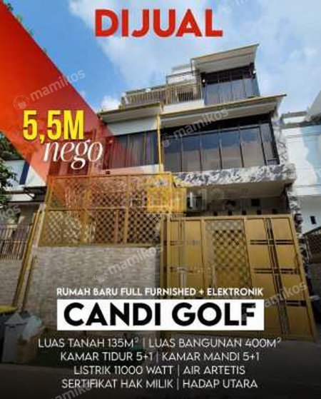 Dijual Rumah Mewah Baru Renovasi Full Furnished Graha Candi Golf Semarang Luas Tanah 135m² Luas bangunan 400m² Kamar Tidur 5+1 Kamar mandi 5+1 Garasi 1 + Carport 1 Listrik 11000 watt Air artetis Bangunan baru renovasi FULL FURNISHED mewah 14 unit AC baru 7 tv led baru ( 85",75", 65",55", 43", 43", 32") Lemari es baru 2 ( 4 pintu, dan 2 pintu) Jakuzzy Mini bar Mesin cuci front loading Kitchen set Walking closet dll Harga 5,5 M nego
